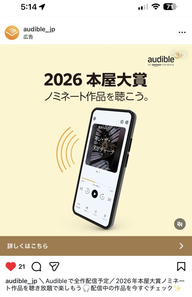 本日、二度目の「オーディブルゴールデンタイム」です。