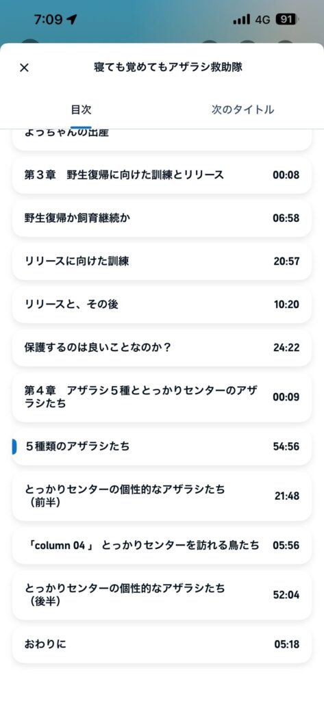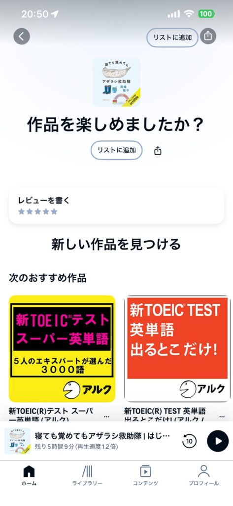 まだ眠いので、布団の中でスマホを操作してAudibleアプリを立ち上げます。