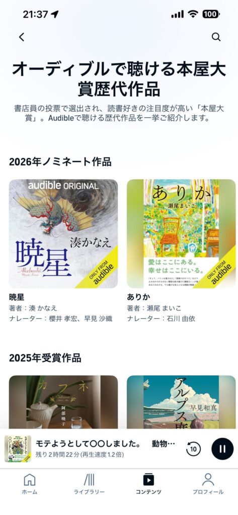 これが気軽にたくさんの本を試せるAudibleの良さですね。