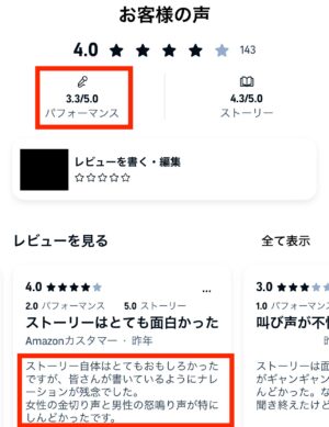 ナレーションに違和感がある作品は、レビューに書かれていることが多いです。