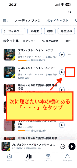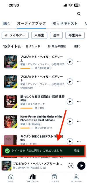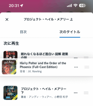 今聴いている本が終わった瞬間に「次の読書」がスタートするので、とても快適ですよ!