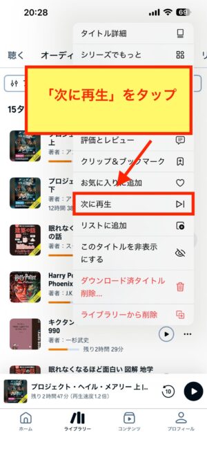 そんなときでも、あらかじめ「次に再生」を設定しておけば読書が止まりません。