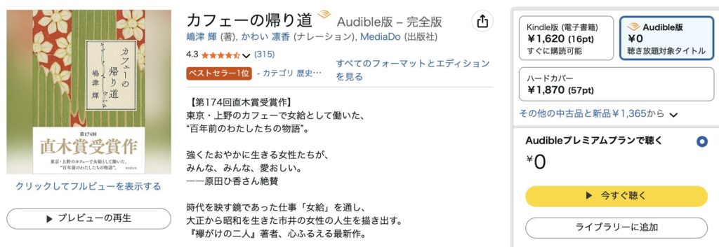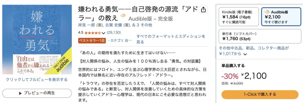 対応している本は、「Audible版」の選択肢があります。