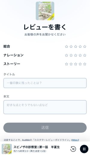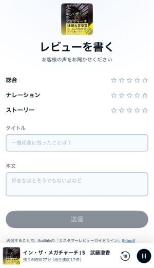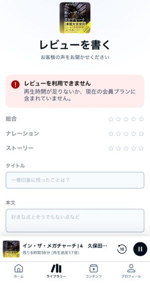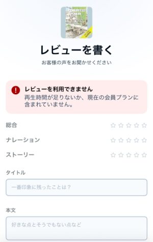 でも、Audibleでは一定時間聴かないとレビューが書けません。