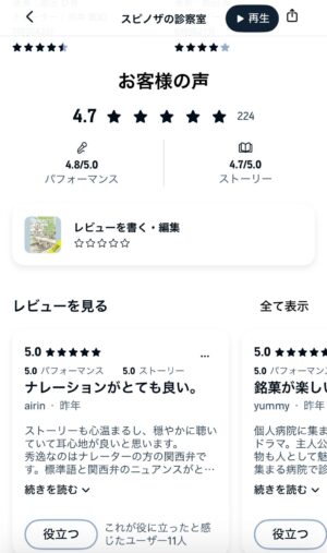 特にAudibleでは、ナレーション(読み上げ)の評価がとても重要です。