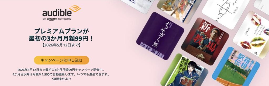 Audible「30日間無料体験」と99円キャンペーンはどちらがお得?